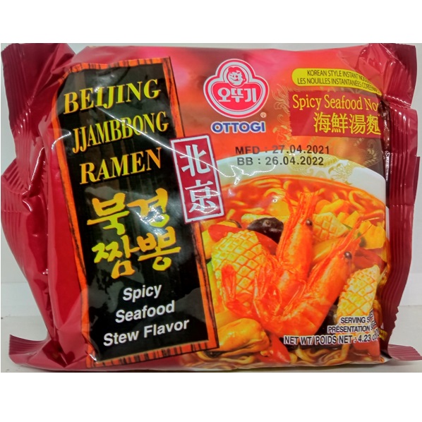 Ottogi Jjambbong Ramen Spicy Seafood Noodle 120g