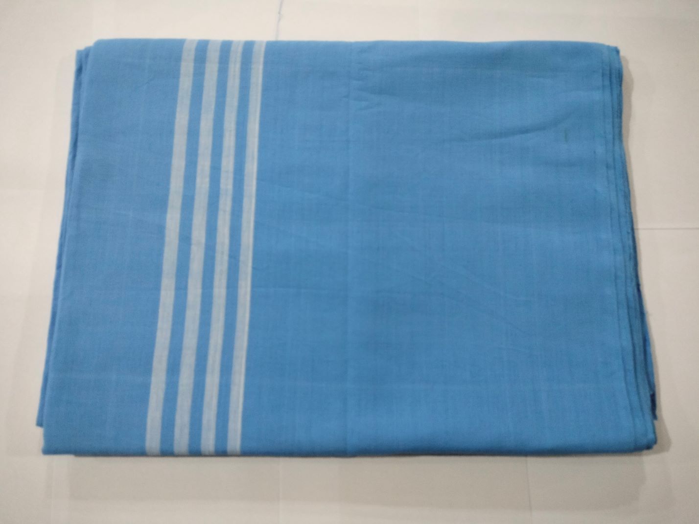 Handloom Douible Bed Bedsheet Blue with Stripes - Pure Cotton Asungba